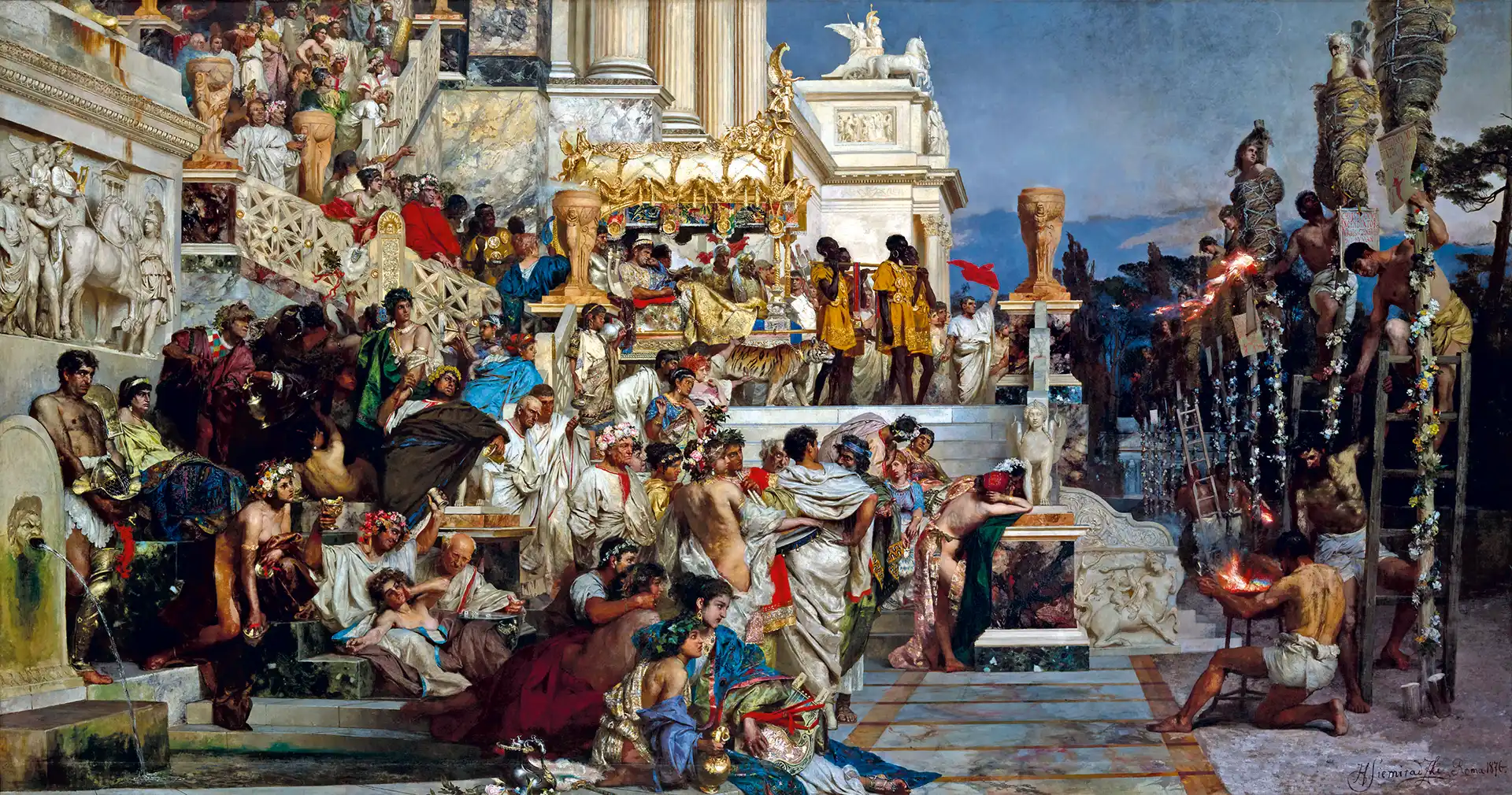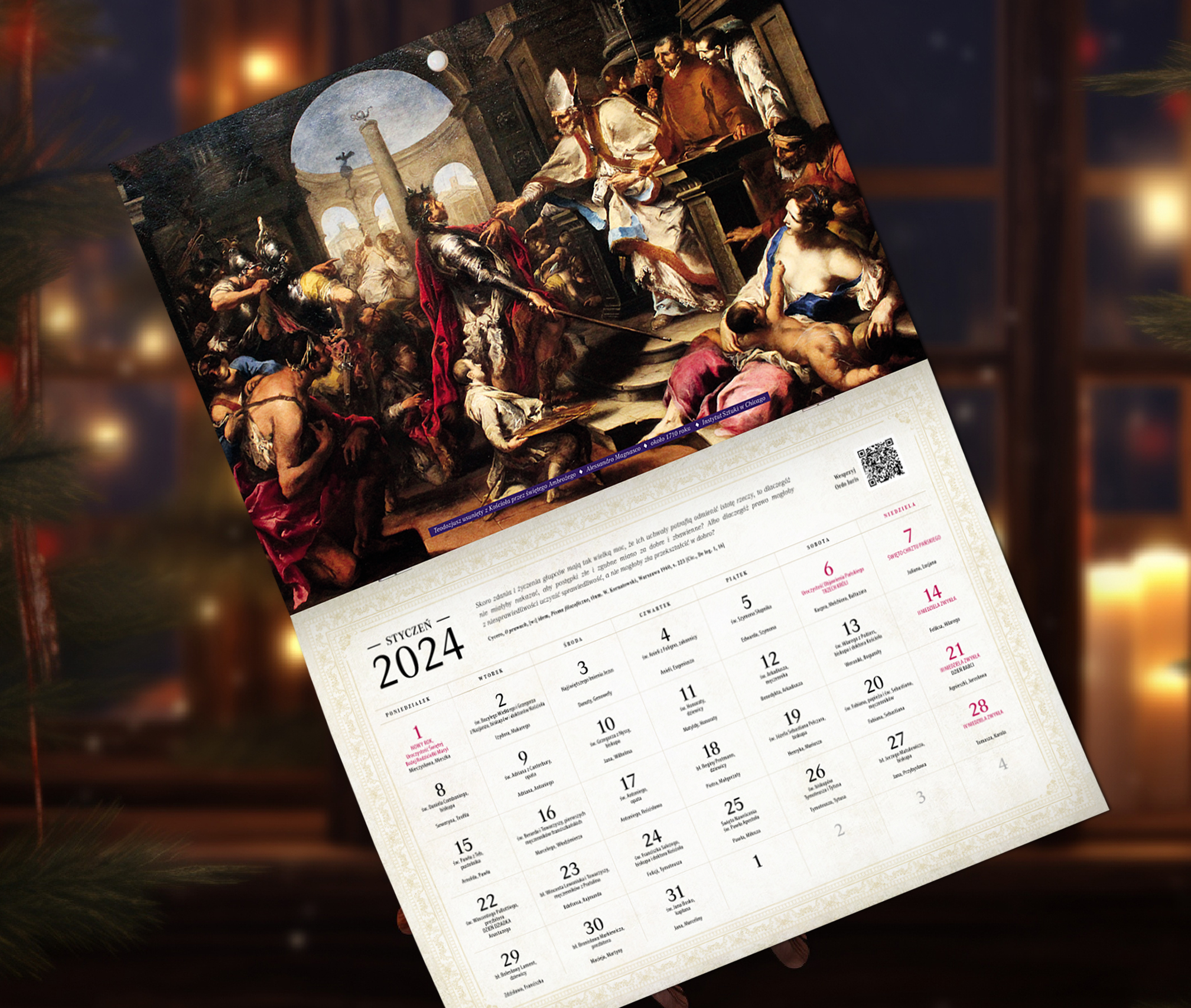 Pierwsze strony kalendarza ilustrują epokę prześladowań pierwszych chrześcijan oraz jej symboliczne zakończenie, którym było nawrócenie rzymskiego cesarza Konstantyna.